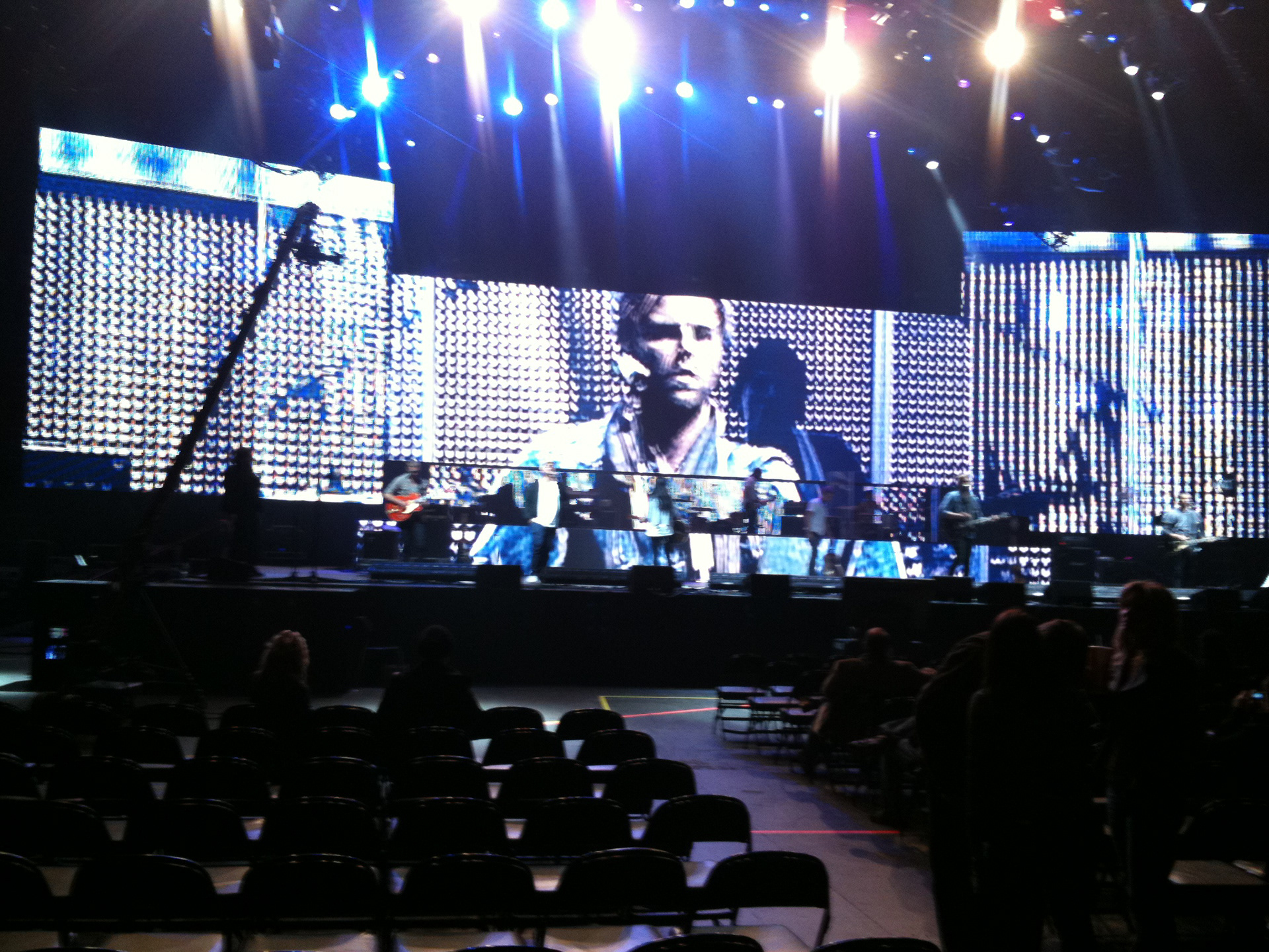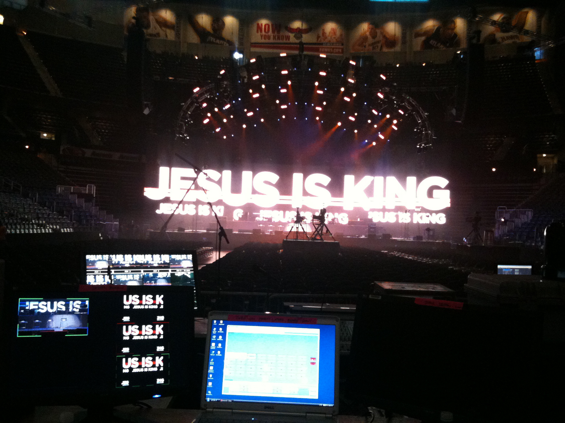 One of my favorite photos of all time. This was for a Kristian Stanfill song at the Passion Conference in 2010. The set was a mix of 5 different high and low rez LED panels. One video was rendered out in After Effects and then mapped to the stage with an Encore.