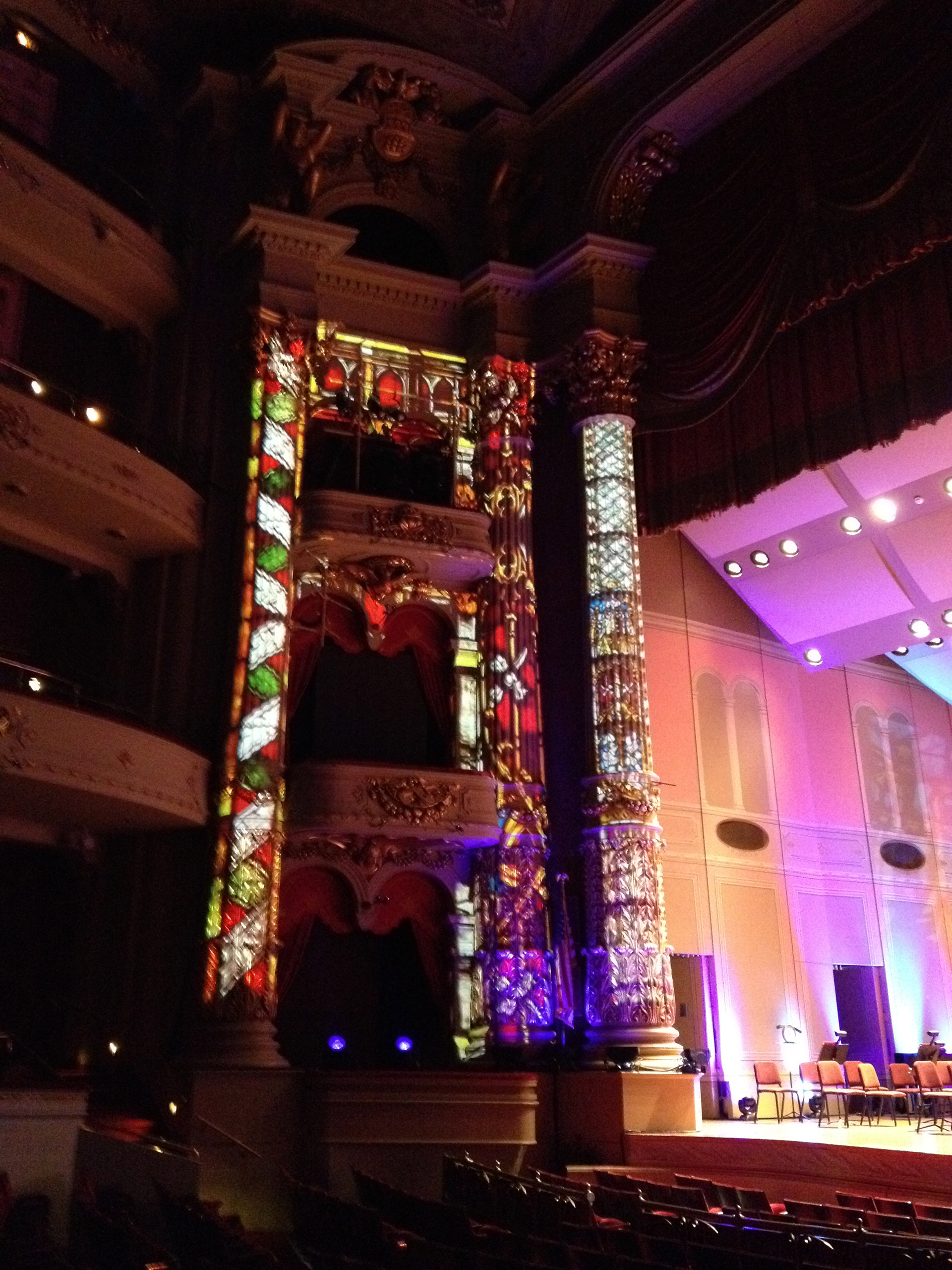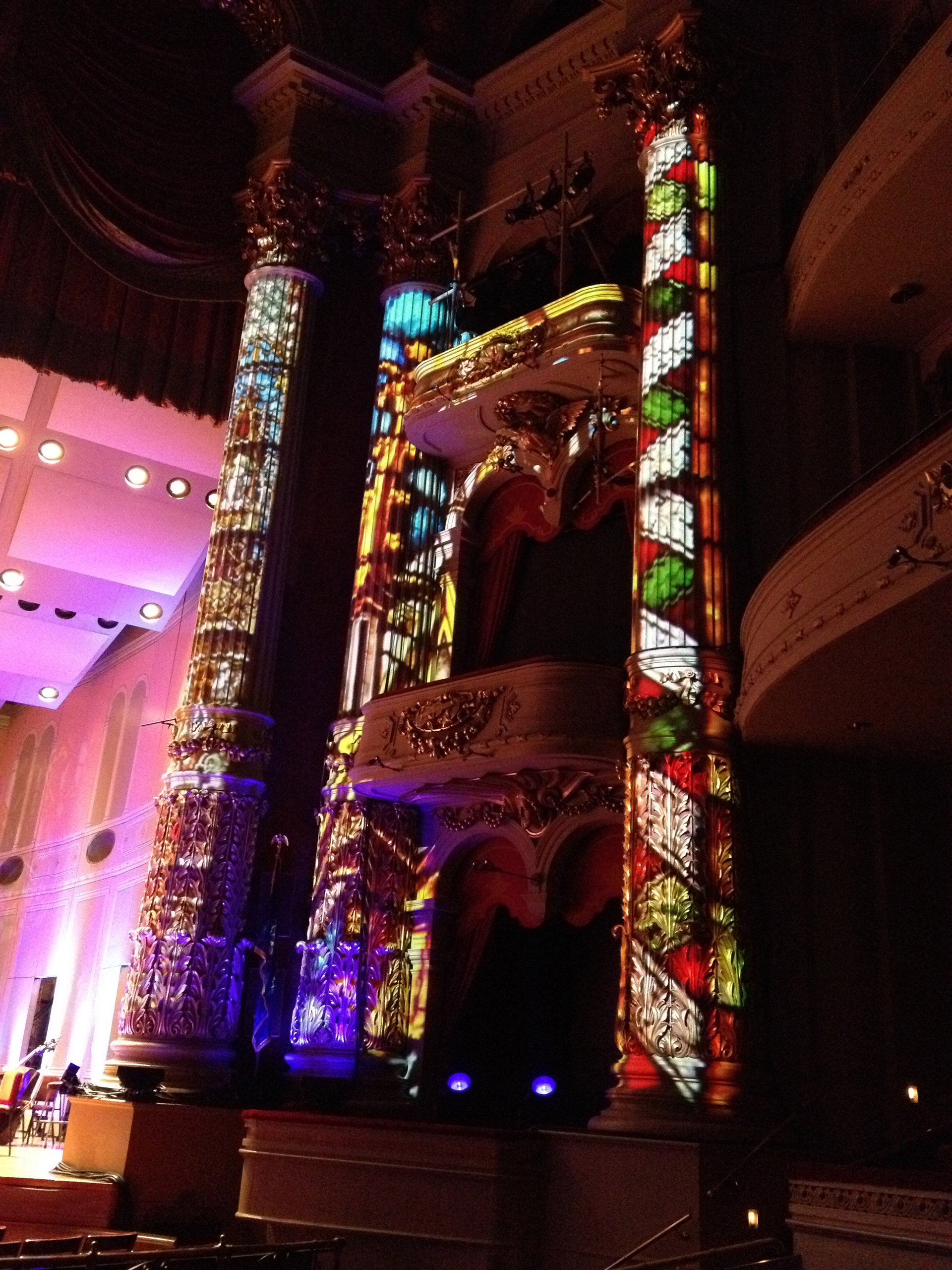 We made a scale model of the theater so we could prototype and test. This is us showing it to the creative director.